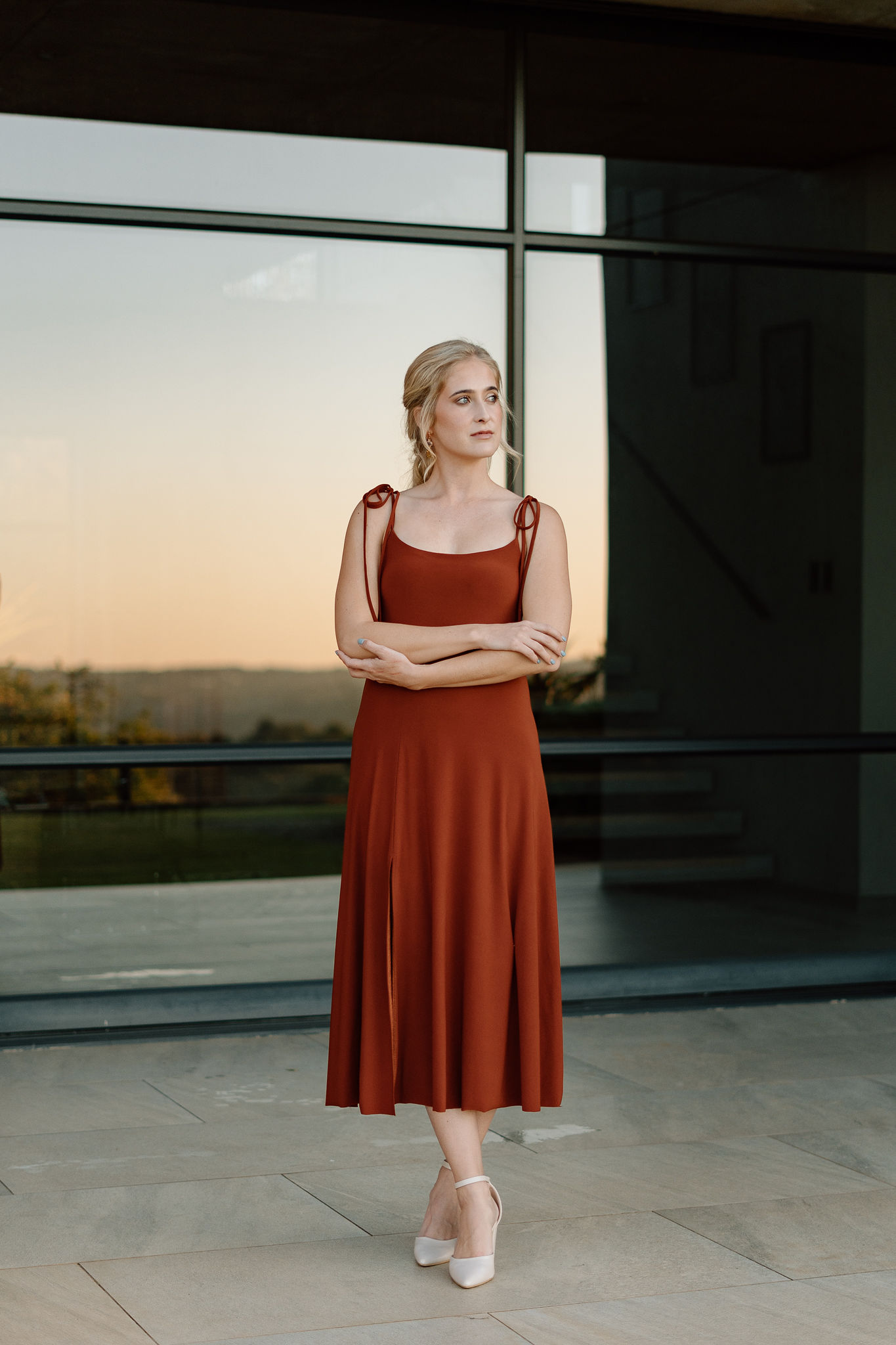A stunning summer dress option with delicate bow detail.