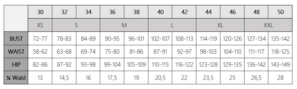 Bust: across the largest part of the bust
